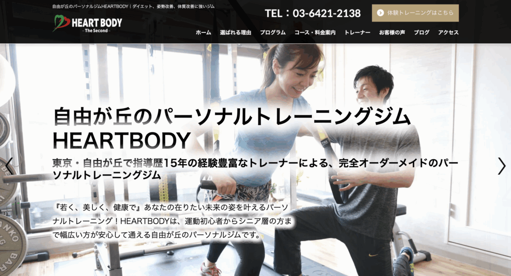HEARTBODYは自由が丘で11年以上の実績を持つパーソナルジムで、指導歴15年以上の経験豊富なトレーナーによる完全オーダーメイド指導が魅力的です。