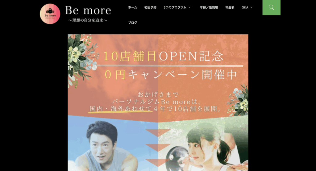 パーソナルジムBe more自由が丘店は、自由が丘駅から徒歩3分の完全個室型ジムで、体質改善・姿勢改善・痛み改善・産前産後ケア・能力向上の5つのプログラムを提供。