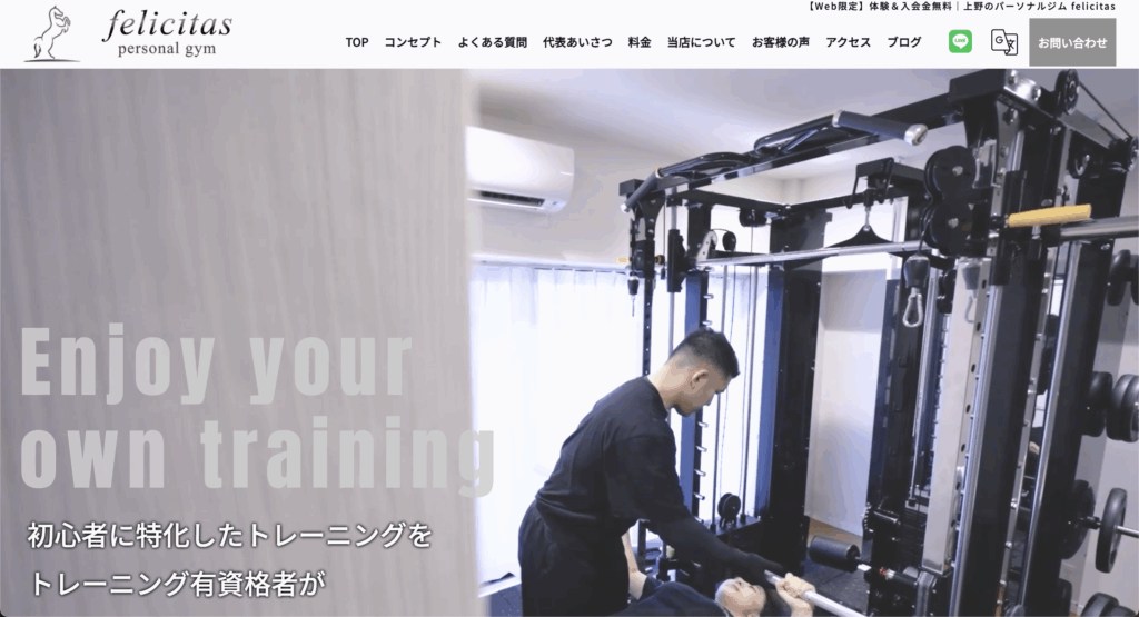 パーソナルジムfelicitas上野店は、初心者に特化した完全個別指導型のジムで、「なりたい自分」に少しずつ近づくことをサポートします。